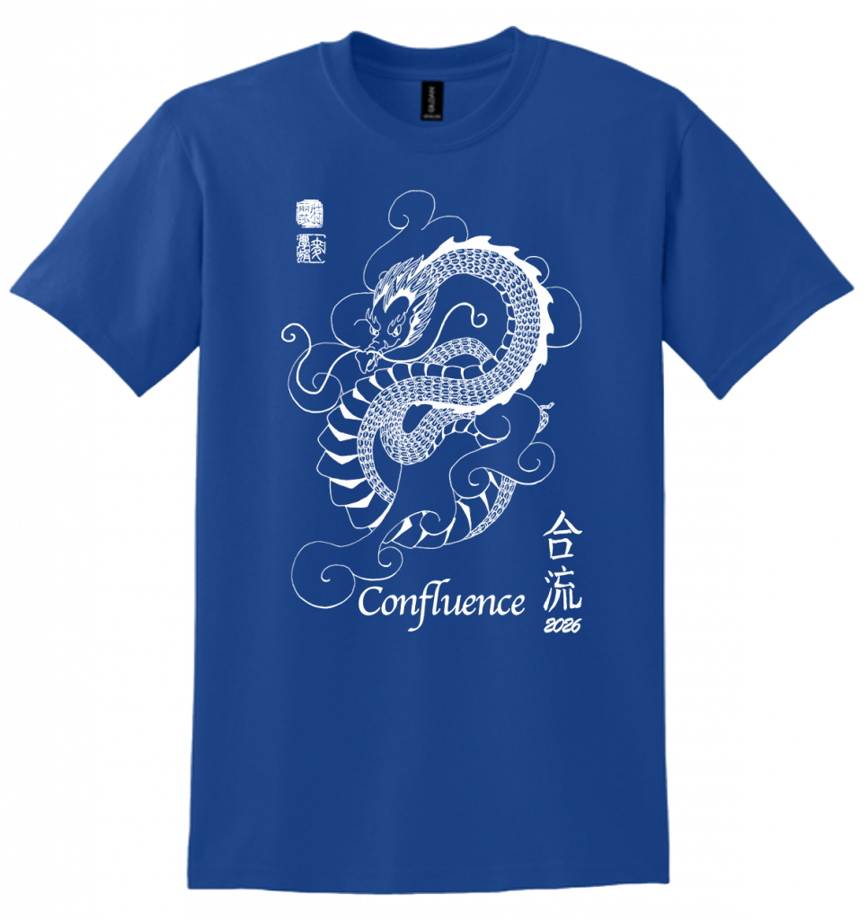 The 2026 Confluence t-shirt, with artwork by Patricia McCracken!